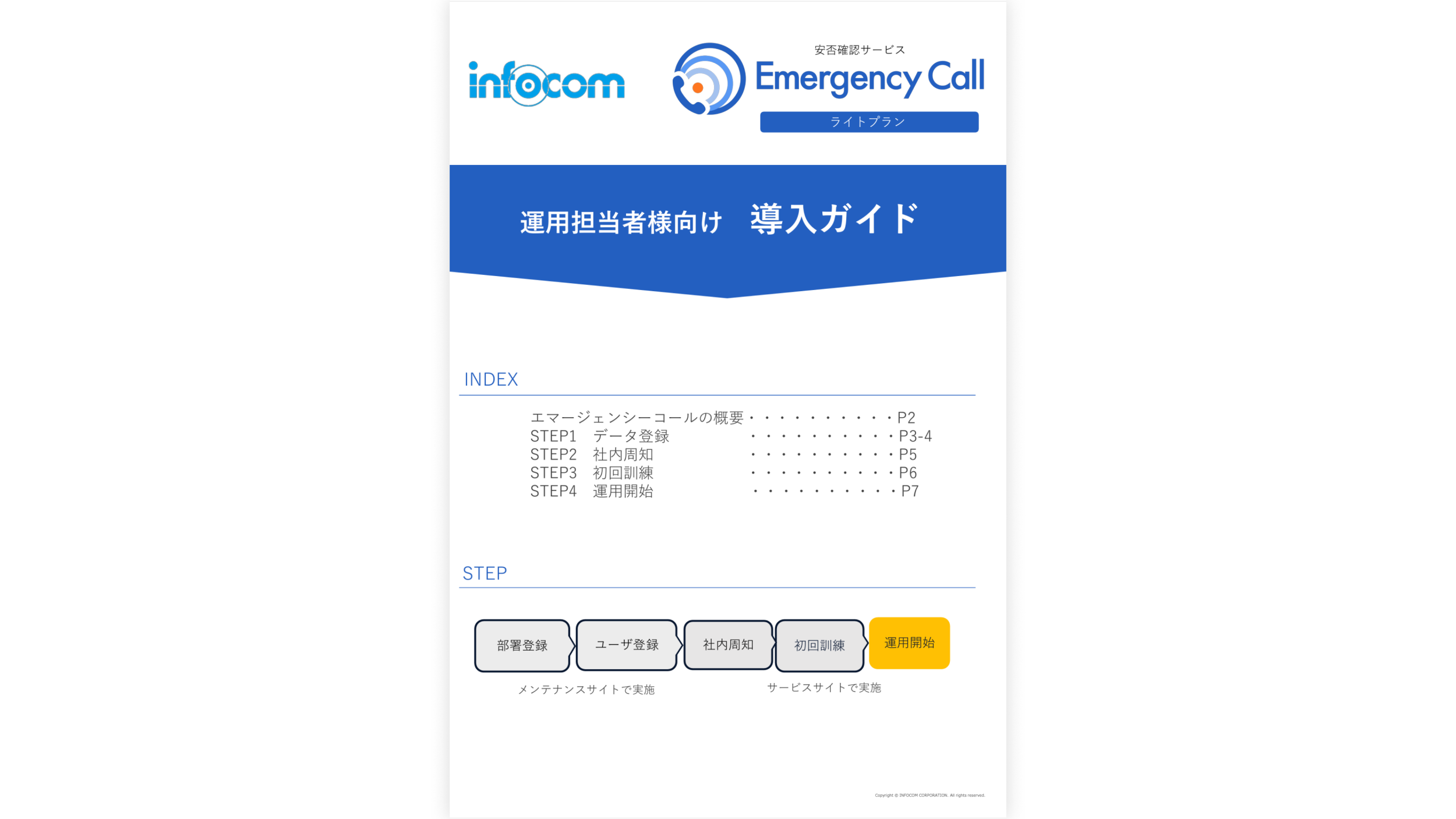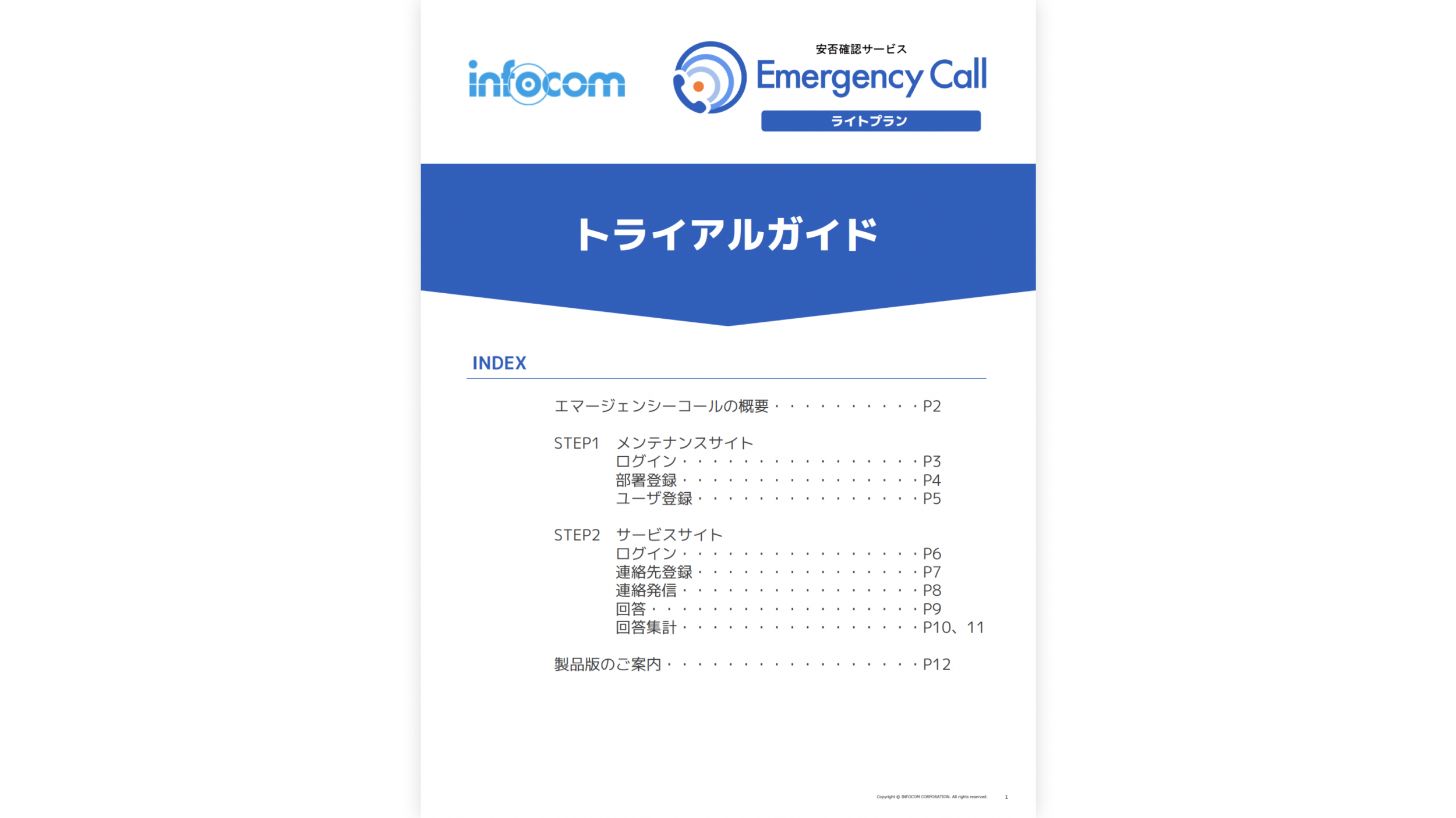 エマージェンシーコールライトプランのトライアル以降の導入の手順と確認ポイントのわかる資料です。