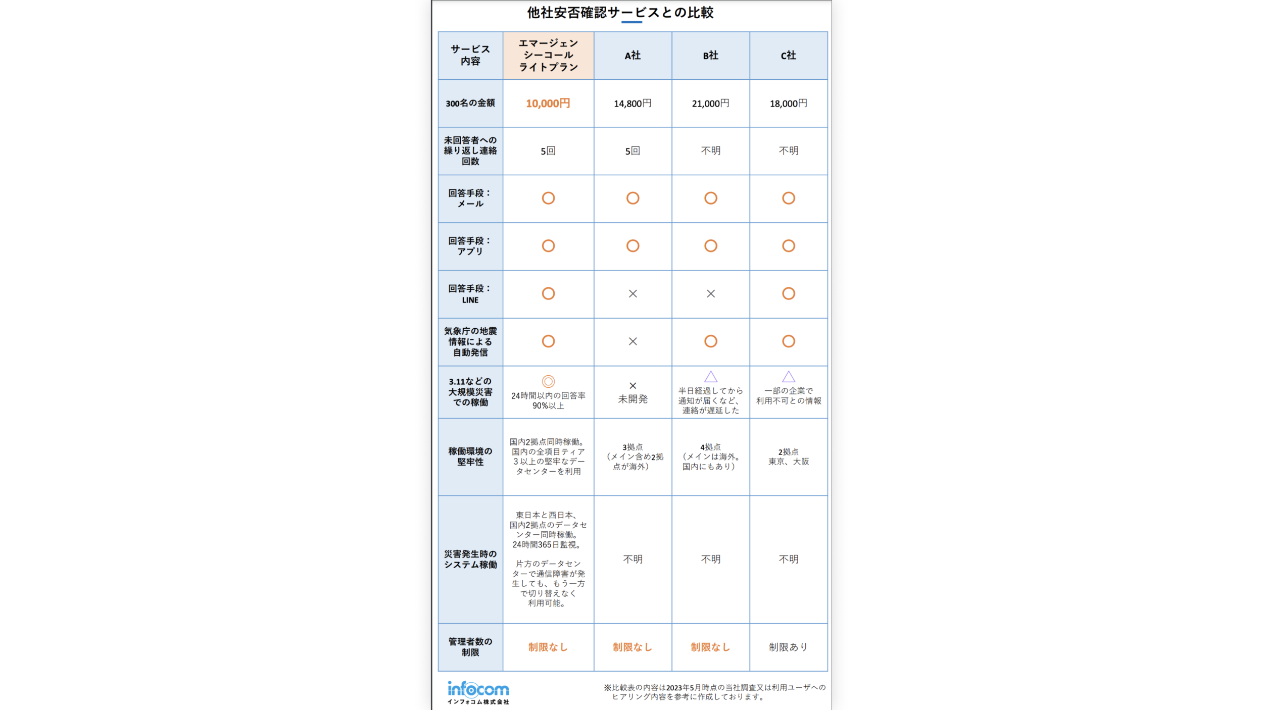 EmergencyCallライトプランを選んだ理由がまとめられている資料です。
