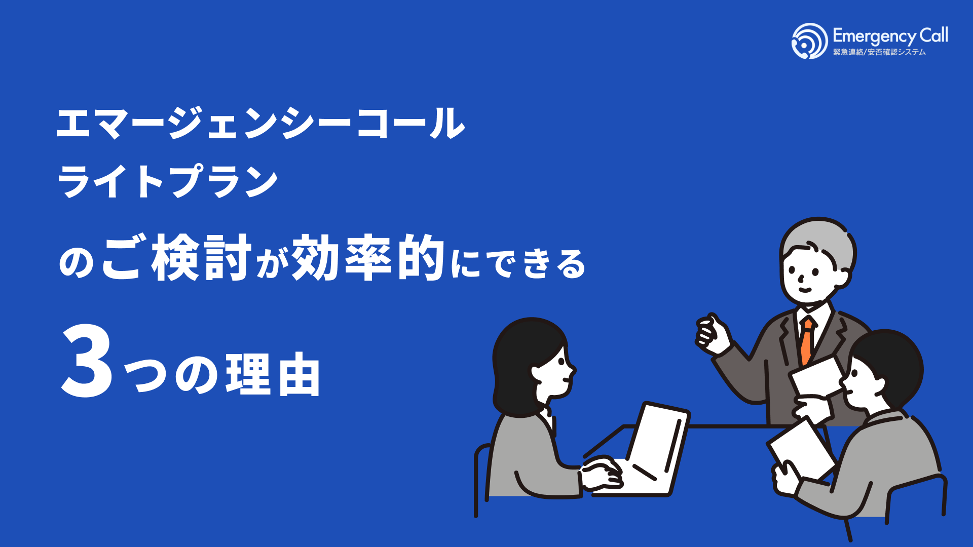 EmergencyCallライトプランのご検討が効率的にできる3つの理由についてまとめられている資料です。